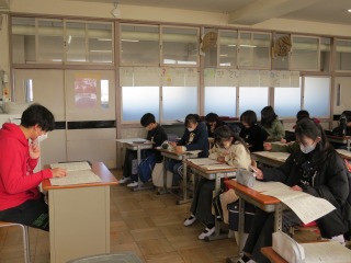 保健のテストが返ってきました。問題をもう一度読み返しながら、答えを確認していました。