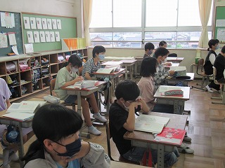 6年1組は国語の時間でした。新出漢字の練習と教科書の音読を行っていました。6年生の漢字は難しい字が多くなるので、確実に覚えていきましょうね。
