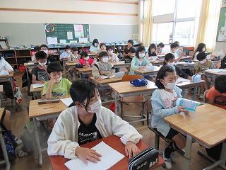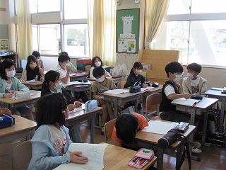 4年1組では、朝の会の時間、明日のクラブについて説明を聞いていました。