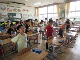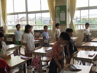 1年2組では、授業が始まるとき、とってもはっきりとした号令がかかり、みんな姿勢よく礼をができました。
