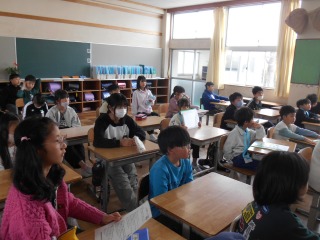 1年生を交えて、初めての通学班会議を行いました。班長、出発時刻、集合場所、通学路等の確認をしていました。