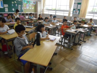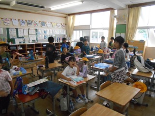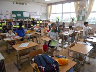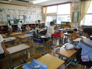 提出物を出し、連絡帳を書き始めていました。元気な挨拶が返ってきました。