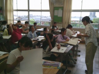 読書感想画の下描きをしていました。自分が感動した場面を思い浮かべ、まずは中心に使う色を何にするか考えていました。