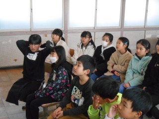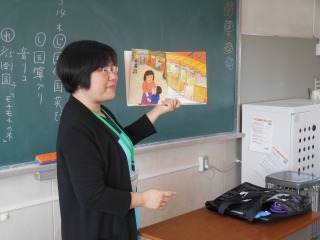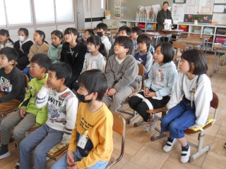 表紙裏の絵本のあらすじを読んでいただき、ワクワクしていました。読み聞かせが始まります。