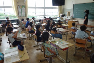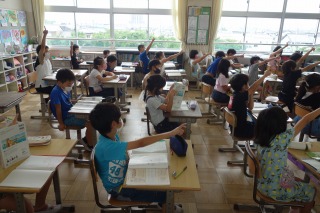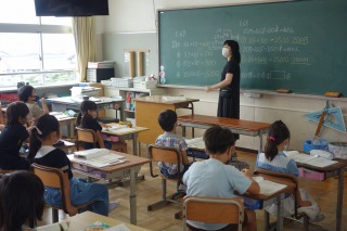 3年1組の算数は、大きな数のかけ算の学習でした。大きな数のかけ算の問題に挑戦しました。
