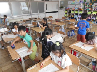 テストが返却されていました。しっかりと見直し、一つずつできるようになってほしいです。
