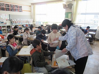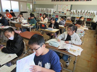 3年1組は社会の時間でした。自分たちで教科書を参考にして年表を作成していました。