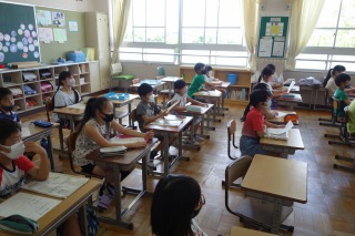 4年2組では、夏の生活のプリントが配付されました。プリントを見ながら、夏の生活について1つずつみんなで確認しました。