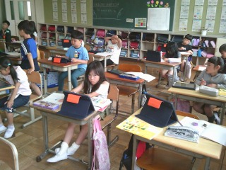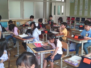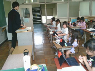 育てているミニトマトの苗を撮影し、観察したことを思い出しながらまとめていました。