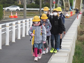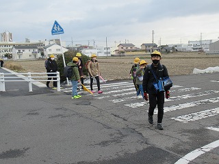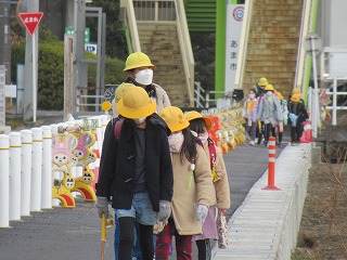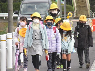 北門の通学班の登校の様子です。