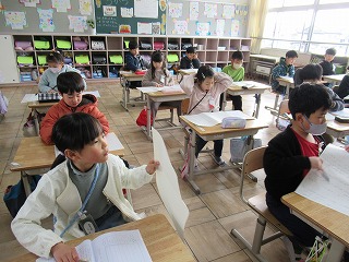 1年2組では、国語の時間、作文の学習をしていました。