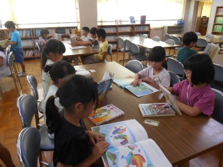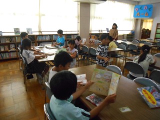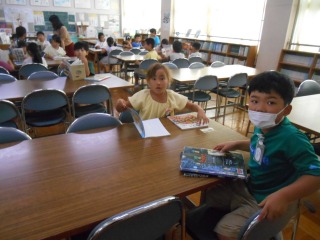 図書室で、夏休みに借りる本を選んでいました。長い休みにできることをいっぱいしてほしいです。