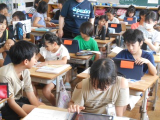 高跳びの記録について、目標設定をしていました。どうすると、高く跳べるか考えてやってみます。