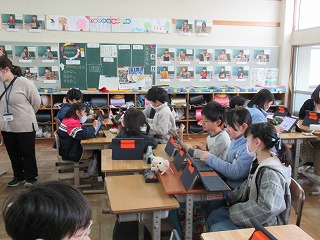 4年1組では、国語の時間、タブレット端末を使い、学習を進めていました。