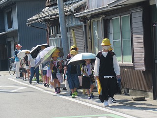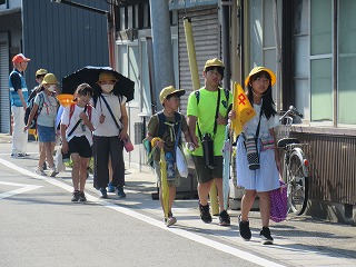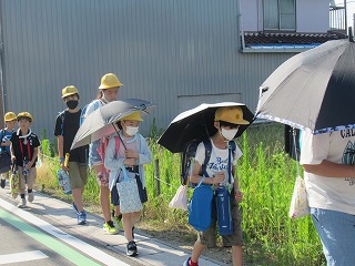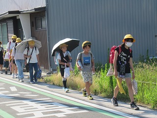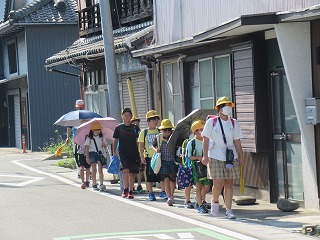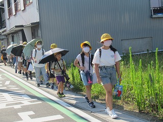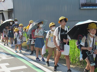 南門の通学班の様子です。今日も強い日差しがさしています。