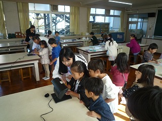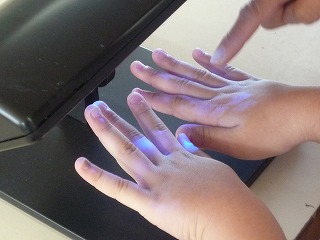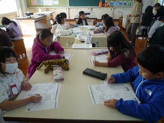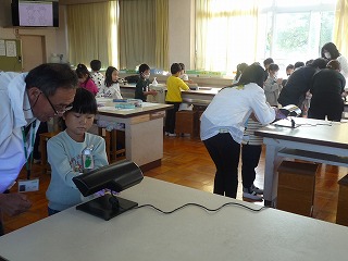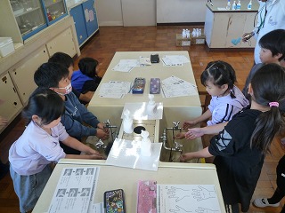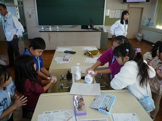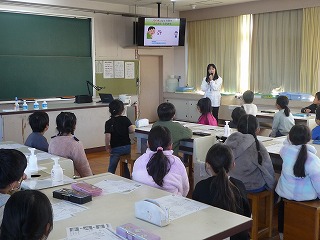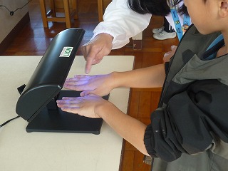 かぜや感染症予防に有効な方法の一つに、手洗いがあります。今日は外部講師をお招きし、「手洗い授業」を行いました。念入りに洗ったにもかかわらず、汚れが残っていることが分かると、子どもたちは驚いていました。この後、手の洗い方を教えていただきます。