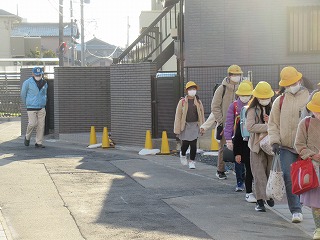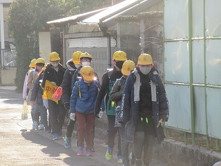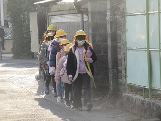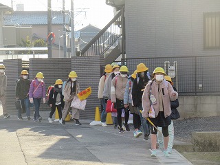 東門の通学班の登校の様子です。今日は、風もなく、比較的暖かい朝となりました。
