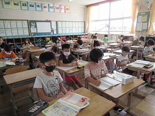 2年2組では、国語の時間、漢字の学習をしていました。みんなしっかりとノートに書きこんでいました。