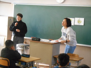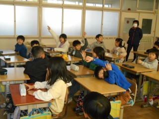 こちらも同じように果物に関わるクイズをしていました。数の数え方も、この後学習していました。