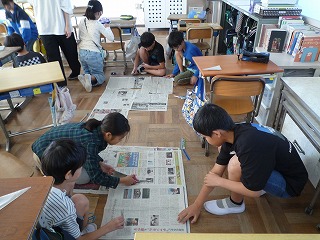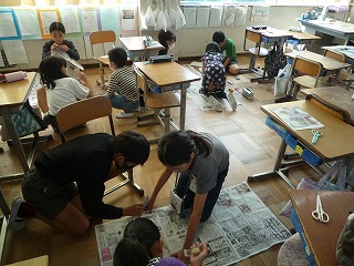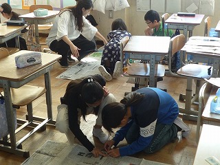 1㎡になるように新聞紙を切ったり、くっつけたりして、大きさについて学習しました。