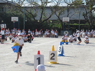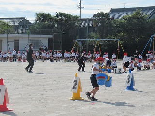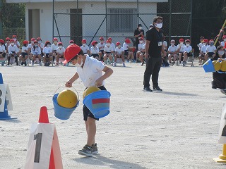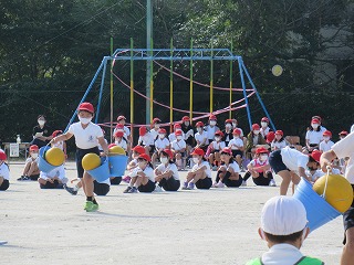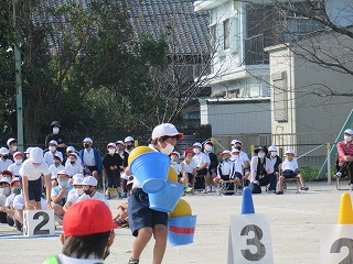 バケツに入ったボールを、さいころの目に従い、運んでいきます。いろいろハプニングありです。