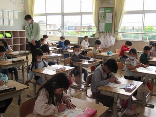 1年1組では、生活科の時間、生活科シートを行っていました。