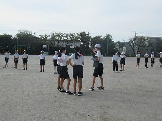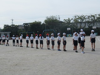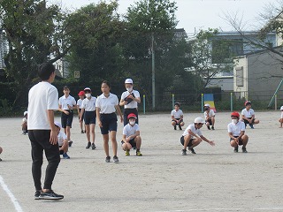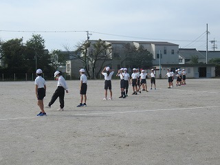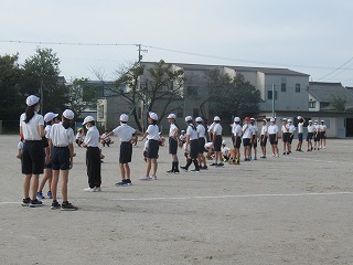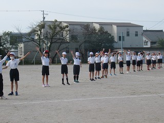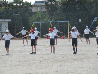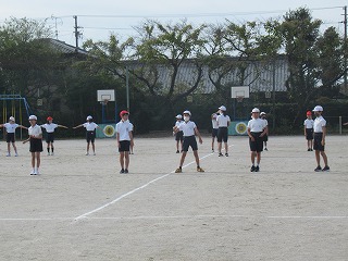 いよいよミワリンピックの表現の練習も運動場で始まりました。6年2組と5年2組が合同で練習していました。6年生の指示の元、一生懸命取り組んでいました。