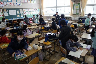 朝の教室では、みなさんが提出物を出したり、連絡帳を書いたり、読書をしたりしていました。