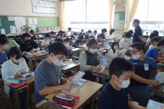 6年1組の国語は、漢字の学習でした。漢字ドリルに取り組みました。
