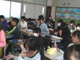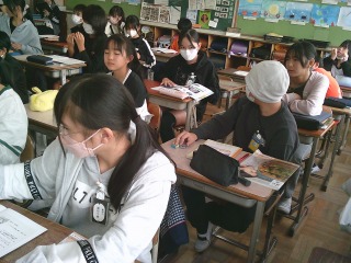 月の満ち欠けについて学習したことを、振り返る時間でした。モニタの映像を見て確認しながらワークシートに書き込んでいました。