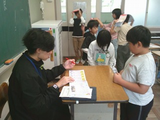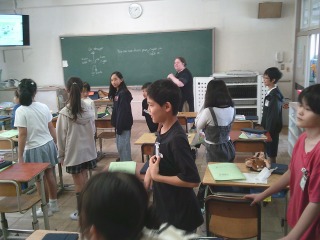 right, left, backなど方向を表す英語を、体を使って覚えていました。笑顔があふれていました。