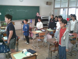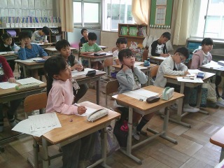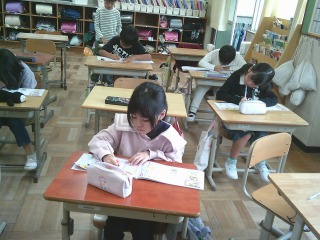 新出漢字の練習をしていました。終わった子から、先生による確認のため並んでいました。