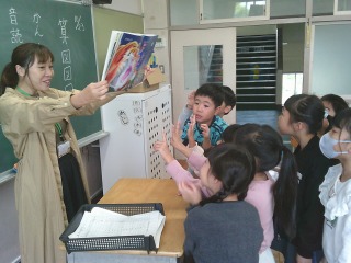 美和図書館より読み聞かせボランティア「ぐーちょきぱー」の方に来ていただきました。図書館の本ですので、ぜひ週末にでも足を運んでみてください。