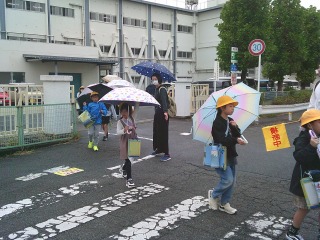 8名のPTAボランティアの方にお越しいただき、子どもたちの参観をしていだきながら安全を守っていただきます。ありがとうございます。