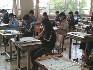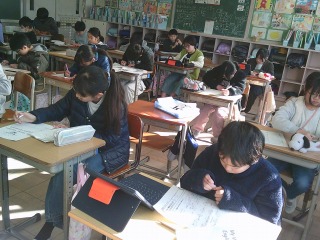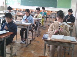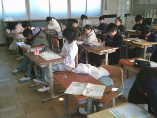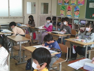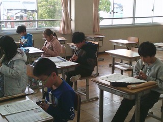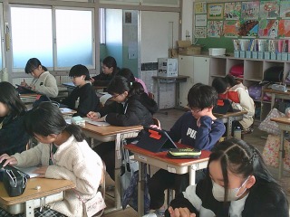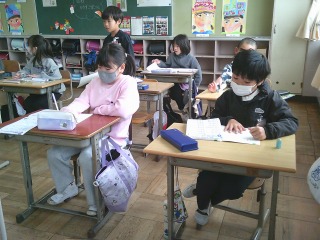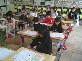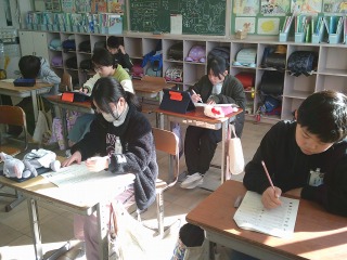漢字テストの直しや、各自自分の課題に取り組む時間でした。静かに集中して取り組んでいました。