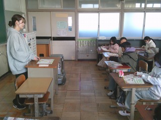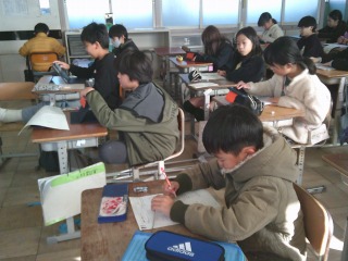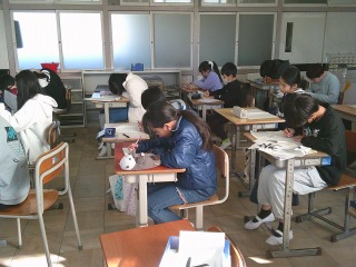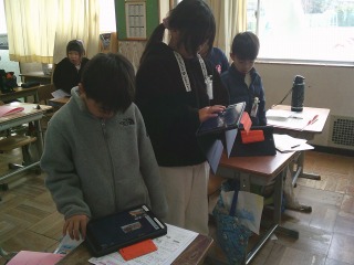 年賀状を書く学習に取り組んでいました。ふだんなかなか機会のない手紙を郵送で送ることや、年賀状独特の表現、日本の風習について学習していました。