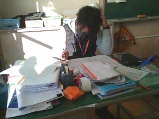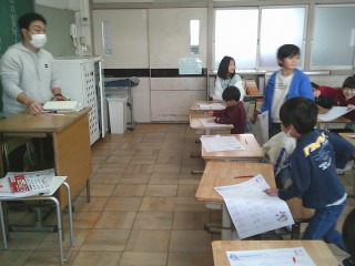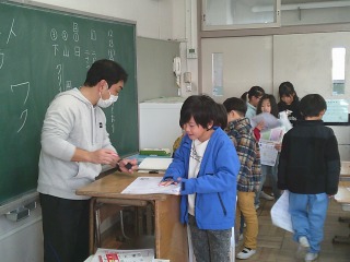 テストや授業で行ったワークシートが返ってきました。漢字、計算などの直しに取り組み、終わった子から先生に確認してもらっていました。