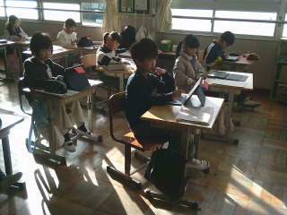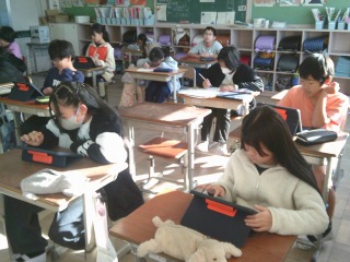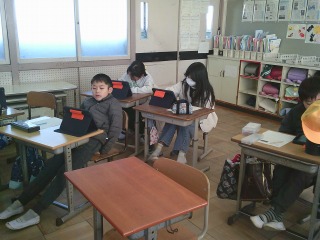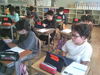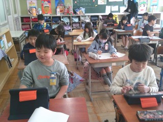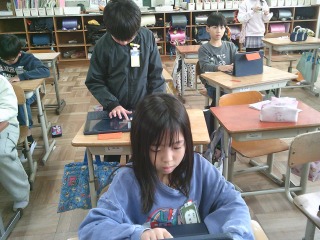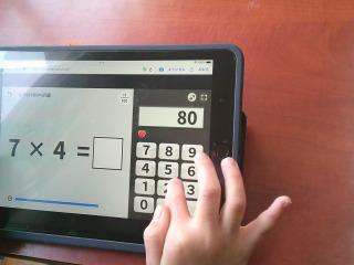 こちらのクラスも、九九を学習していました。タブレットを使い、それぞれレベルを設定しより難しい問題に挑戦していました。