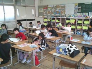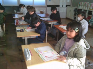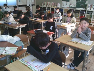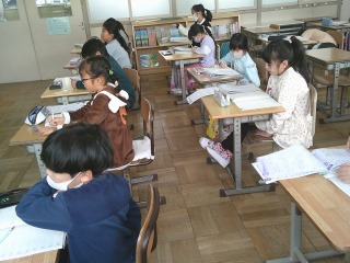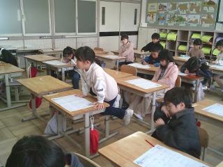 計算ドリルを使い、九九の復習をしていました。しっかり定着させるために、冬休みにもご家庭で取り組んでいただきたいです。