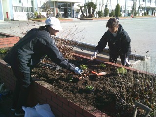 今日は4名の方にお集まりいただきました。くすのき近くの花壇を耕し、まずは雑草や根っこを取った後に、パンジーを植える作業をしました。次に咲き終わったコスモスを抜き、こちらの花壇も耕してコスモスの種を蒔きました。「やったことが目に見えるってやりがいありますね」といつも満足して帰っていただけます。春から秋に咲き誇る姿が待ち遠しいです。今日も寒い中、子どもたちの環境美化にご協力いただきありがとうございました。