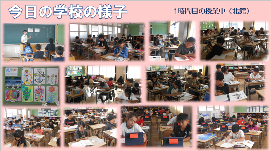 今日の1時間目、北館(2・4・5年)の授業の様子です。どの学級も落ち着いて学習に取り組んでいました。日中、過ごしやすくなっています。ただ、体調を崩しやすくなる季節でもあります。体調を整えて元気に生活していきましょう。