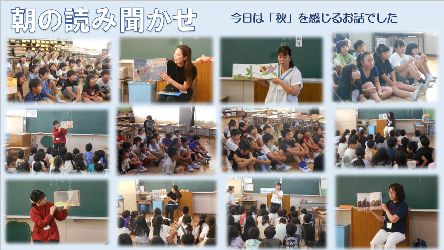 今日は朝の読み聞かせがありました。秋を感じる生き物やハロウィンのお話でした。子どもたちは、いつもどおり目を輝かせて一生懸命お話を聞いていました。