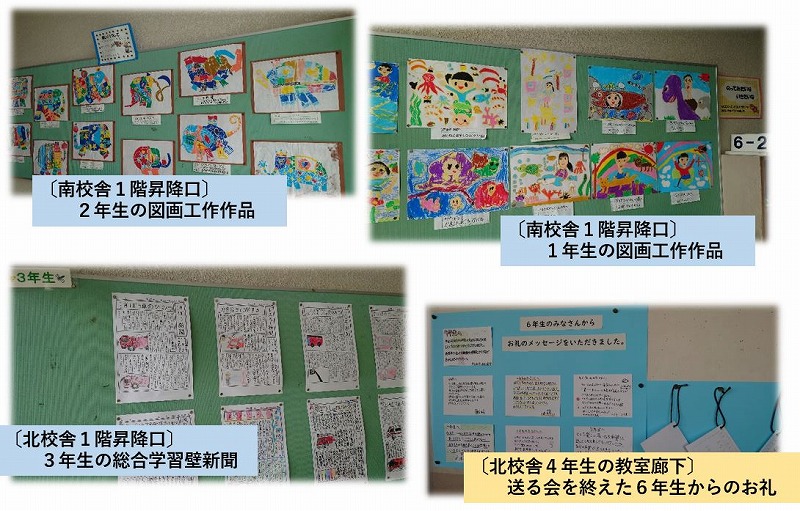 保護者の皆様自身の健康状況を確認の上、ご来校いただきますようお願いします。授業参観を開くことができず、子どもたちの作品をご覧いただく機会を作ることができなかった1年です。ぜひ、ご来校の際には、教室内の掲示板はもとより、上記の