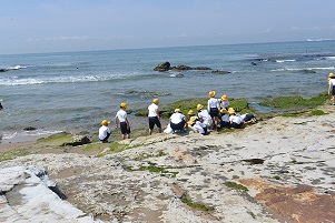 野間灯台付近まで歩き、磯の観察をしました。普段の生活の中では目にすることができない生き物を見つけられ、とても楽しく活動することができました。