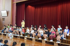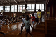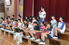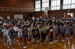 5月30日の陸上競技会に向け、体育館で陸上壮行会