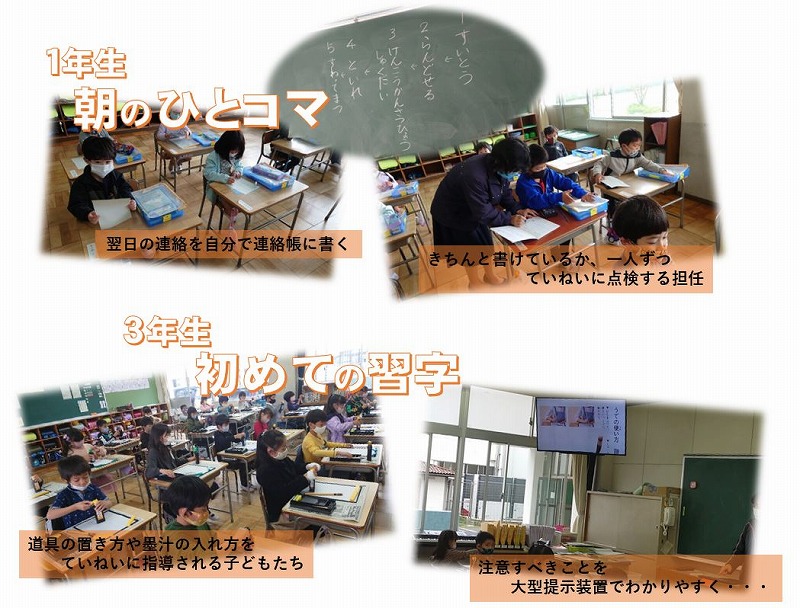 まん延防止等重点措置の適用が検討されていますが、安全と教育活動の充実を両立させるべく、職員一同、力を尽くしています。こうした中ではありますが、できることを着磁るに一歩ずつ進めています。本校では、朝の時間を使って、翌日の連絡事項を各自、連絡帳に書くようにしていますが、1年生にとっては初めての体験で、きちんとできるようになるまで、