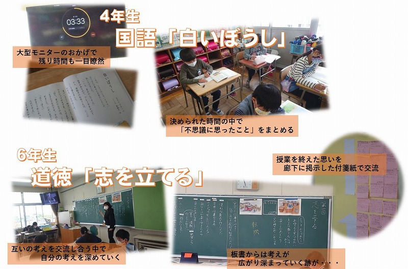 自分の考えをより広く、より深くしていった姿が板書からしっかりと読み取ることができ、授業の充実ぶりがうかがえました。学校を上げて取り組んでいるのが「