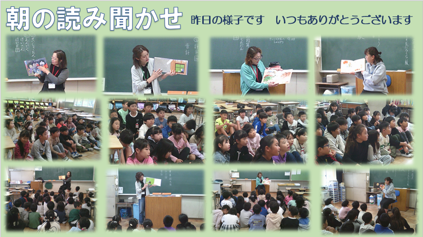 昨日の朝は読み聞かせがありました。どの学級もハロウィンのお話を聞きました。季節に合ったお話や子どもたちの興味をそそるお話を選んでいただいています。ありがとうございました。