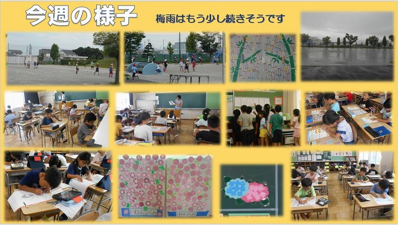 今週は曇りや雨が多く、梅雨本番でした。子どもたちはそんな中でも、運動場が使用できる日は元気いっぱいに遊んでいました。授業中も落ち着いて、夏休み前のまとめなどの学習に取り組んでいました。来週で前期の前半が終わります。元気に夏休みが迎えられるように、体調管理をしっかりして、来週もがんばりましょう。
