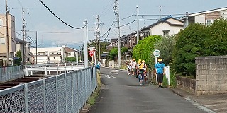 〈日傘が必要のない朝ですが、雨傘の準備は・・・・〉 〈旗当番の皆さんに安全を見守られ・・・・〉